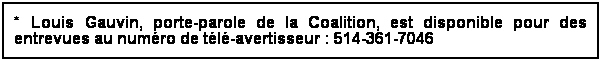 pour le contrôle du tabac : 514-361-7046