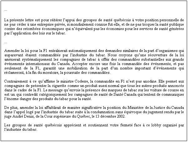 ceux accordés à la F1. « Comment autoriser la commandite de tabac pour